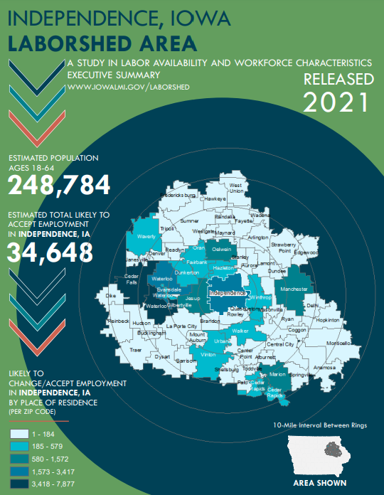 In 2025, BCEDC and Cedar Valley Regional Partnership in partnership with Iowa Workforce Development, completed a Laborshed Study. It defines the area from which Buchanan County draws its workforce, using employee ZIP code data from local employers to map commuting patterns and workforce characteristics.
